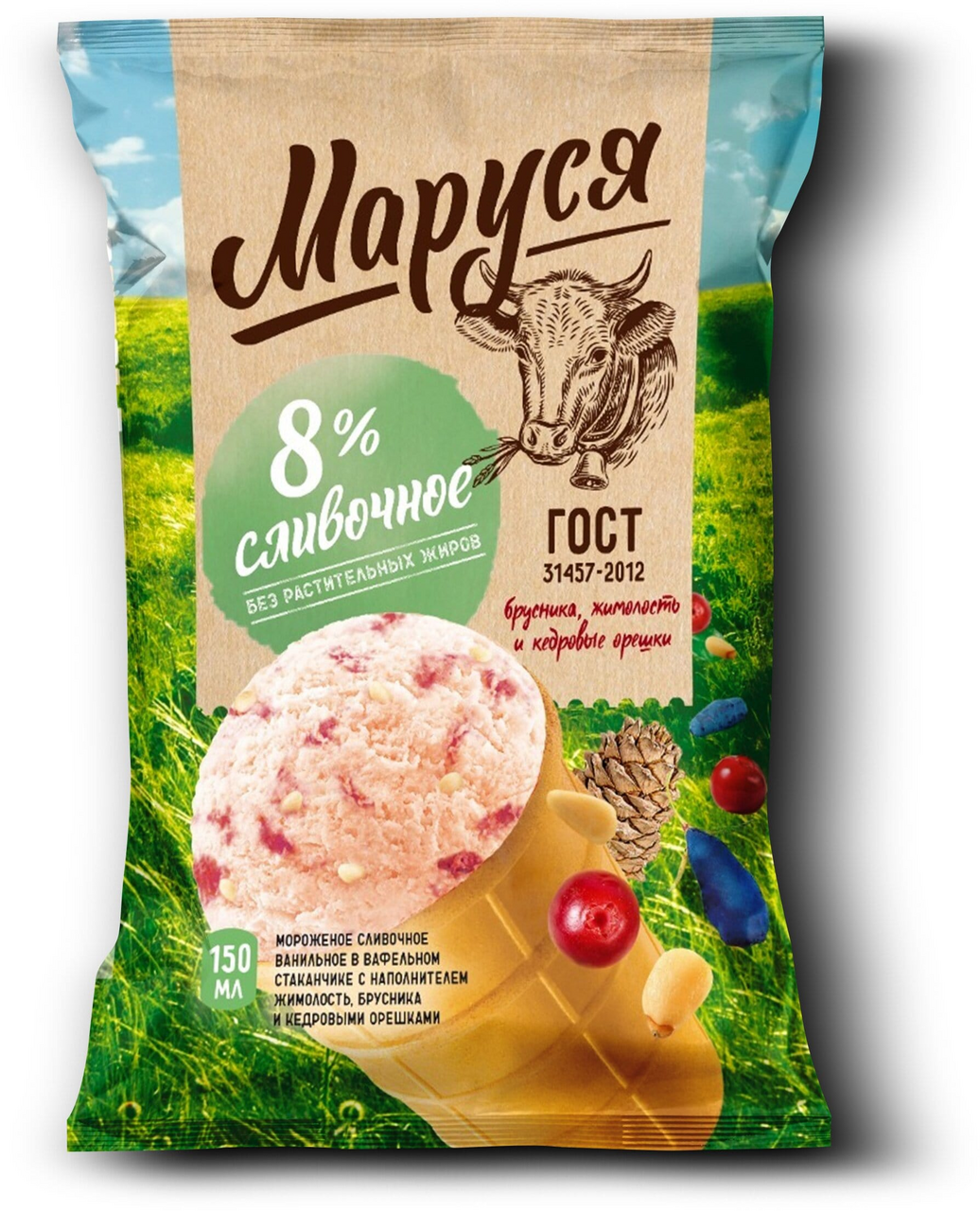 Мороженое Маруся в вафельном стаканчике, брусника, жимолость и кедровые орешки 80г