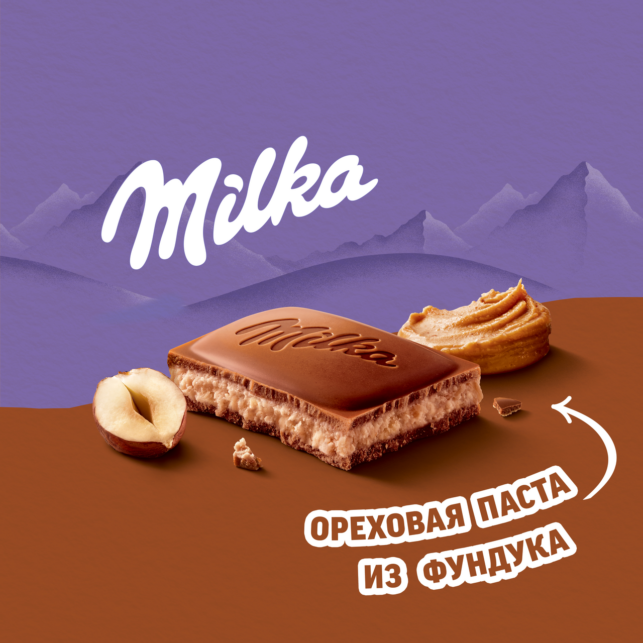 Участвует в конкурсе: Выиграйте кофемашину на сладкое! Совершите покупку товаров-участников на сумму от 1500₽ с 23 октября 2025г. по 14 января 2026г. и получите шанс выиграть кофемашину или другие сладкие призы! Чем больше покупок - тем больше шансов на победу! Подробнее об акции - https://cdn.metro-cc.ru/ru/mndlz_2025.pdf. Шоколад Milka Ореховая паста из фундука — молочный шоколад с начинкой с ореховой пастой и кусочками ароматного дробленого фундука. Шоколад изготовлен из какао высокого качества и содержит альпийское молоко, поэтому он такой вкусный и невероятно нежный! В каждом кусочке шоколадки Milka вы почувствуете сочетание шоколада молочного и тающей начинки с добавлением ореховой пасты, которую гармонично дополняют хрустящие кусочки обжаренного фундука. Идеальное сочетание для тех, кто любит шоколад молочный с орехами и открыт к новым экспериментам! Шоколад с фундуком поднимет настроение, сделает ваше утро чуточку слаще и станет приятной наградой после продуктивного дня. Шоколад подойдет к чаю, дополнит чашку горячего кофе и другие напитки. Его удобно брать с собой на работу, в дорогу и на природу. Шоколад Milka с орешками — это не просто сладость к чаю. Это способ проявить заботу и нежность, вызвать улыбку и радость близких. Преподнесите шоколадку в подарок или насладитесь любимым вкусом в кругу родных. Наполняйте ваши будни моментами нежности вместе с Milka!