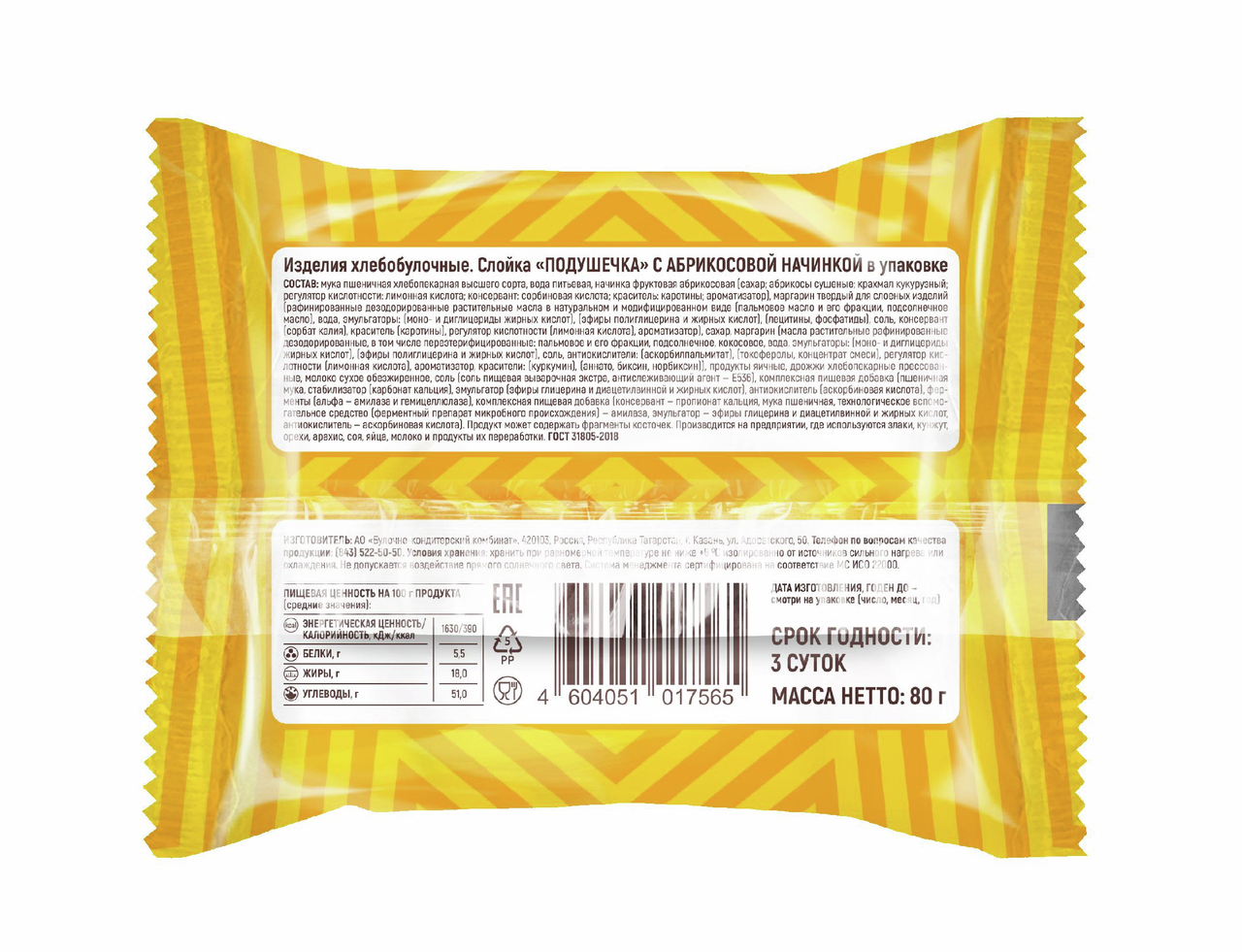 Слойка БКК Казань подушечка с абрикосовой начинкой, 80г