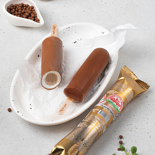Эскимо "Золотая ириска" от Свитлогорья - это настоящий сливочный пломбир с сердцевиной из ириски под тонким слоем карамельной глазури. Мороженое, которое влюбляет в себя с первого укуса.