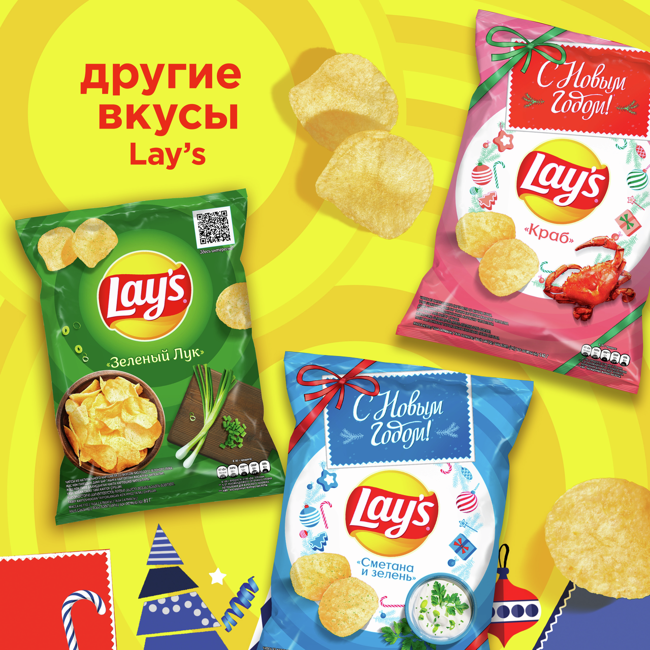 LAY'S— чипсы, каждая пачка которых изготовлена изспециально отобранного картофеля исоответствует самым высоким стандартам качества. Хрустящие илегкие навкус картофельные чипсы LAY'Sбыли созданы, чтобы вызвать улыбку налице каждого человека, поэтому ими так приятно делиться случшими друзьями. Чипсы LAY'S, несомненно, скрасят ваш день!