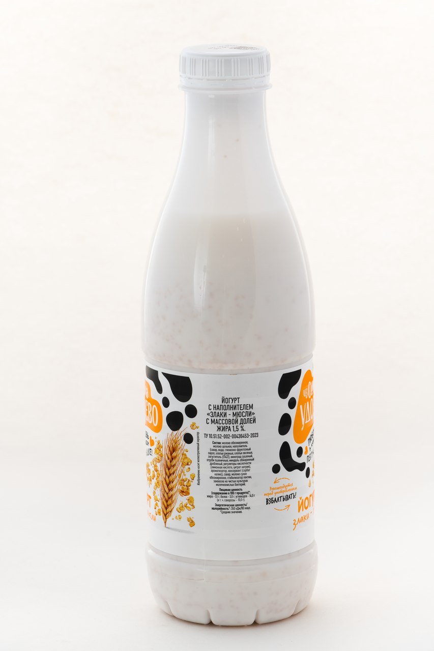 Йогурт питьевой Из села Удоево с наполнителем злаки, мюсли 1.5%, 835г