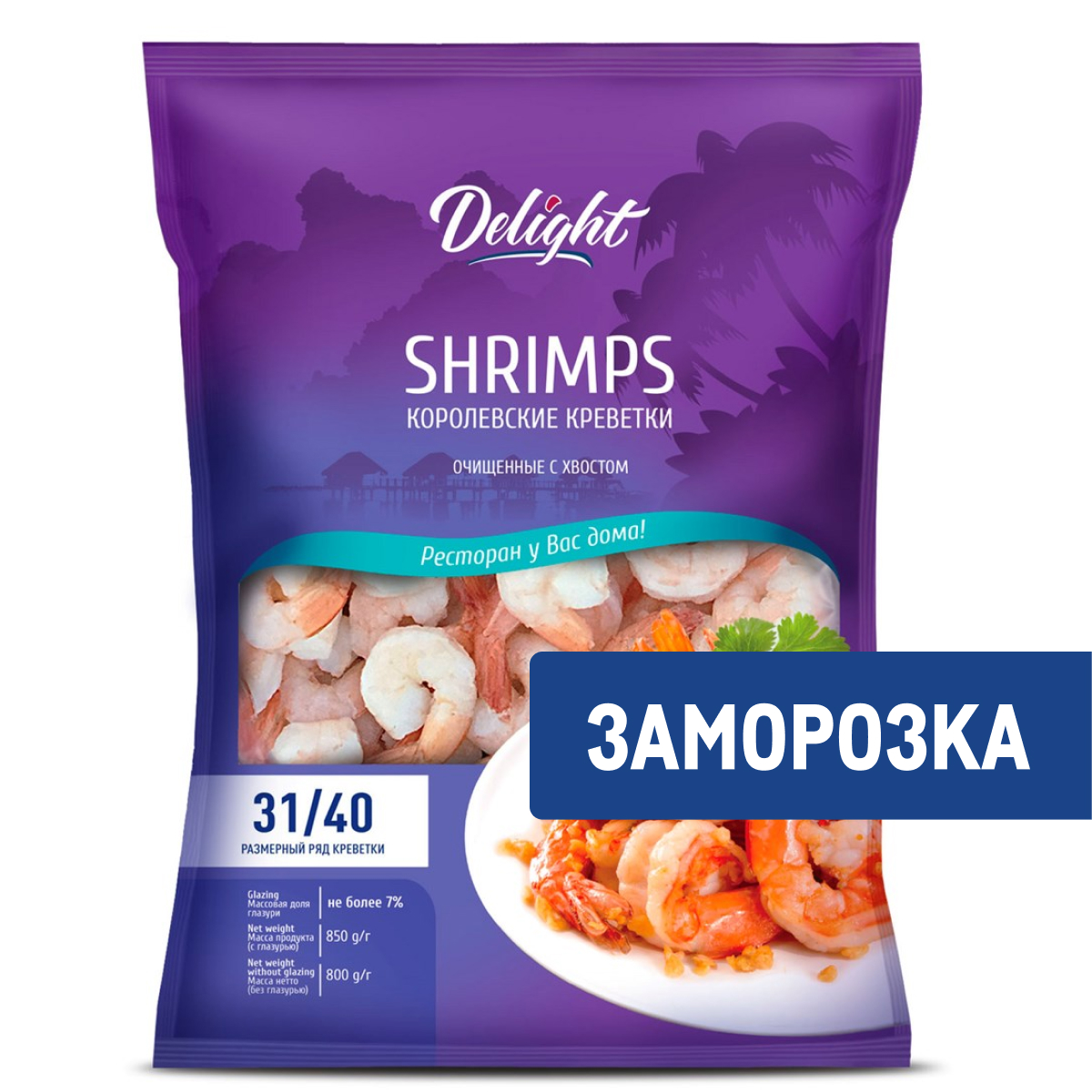Креветки Delight очищенные варено-мороженые 31/40, 850г