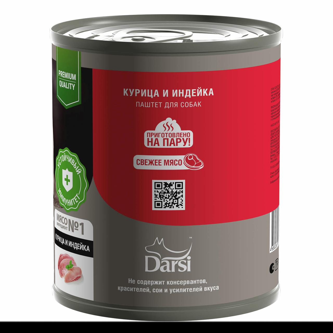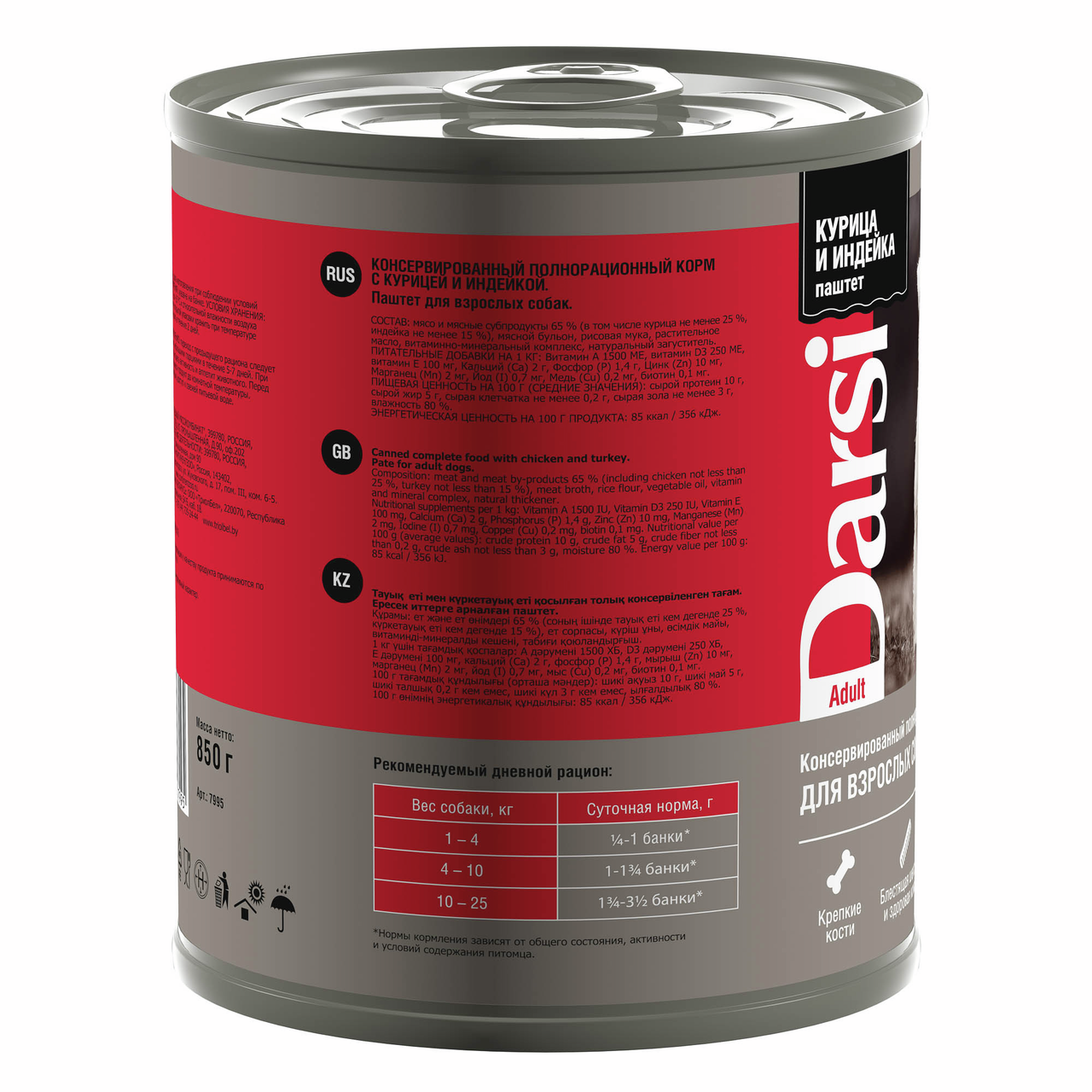 Пашет Darsi для взрослых собак с курицей и индейкой, 850г
