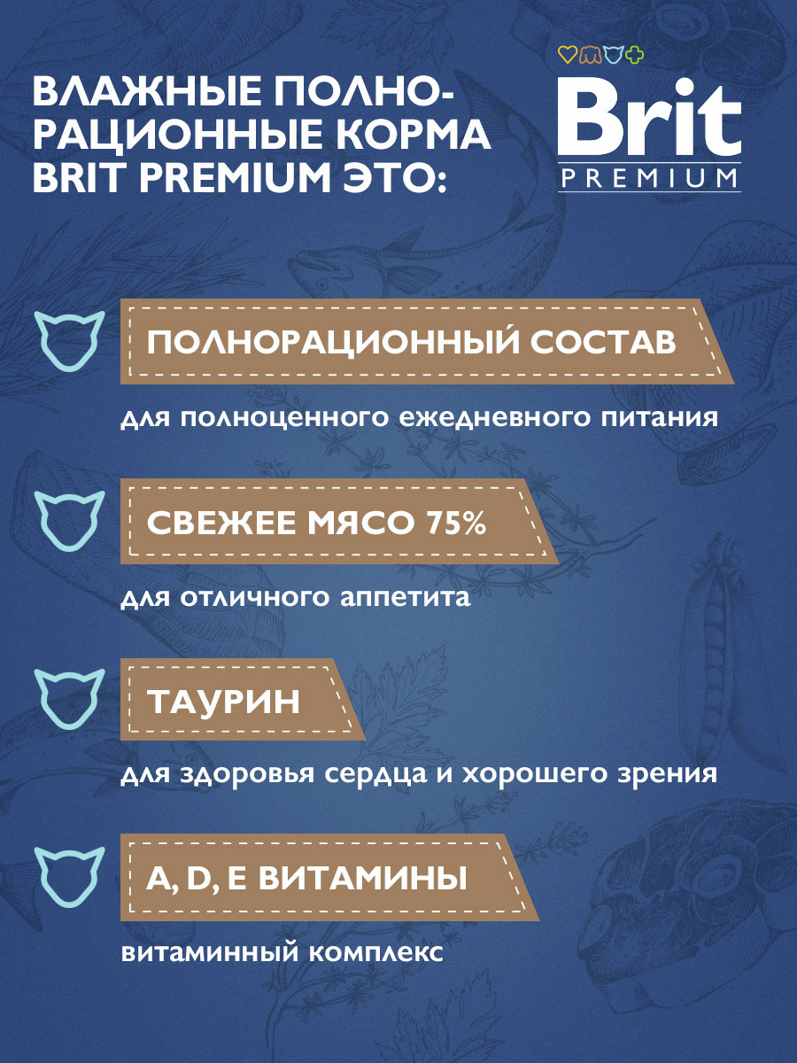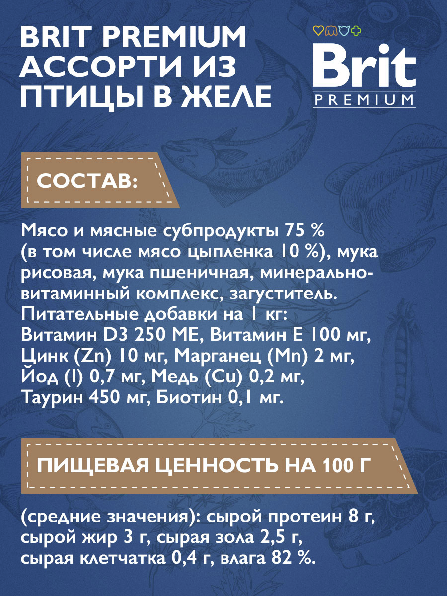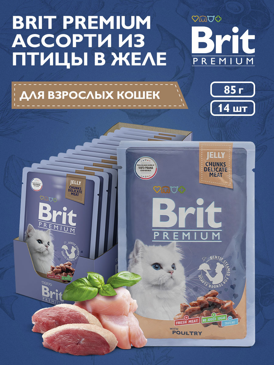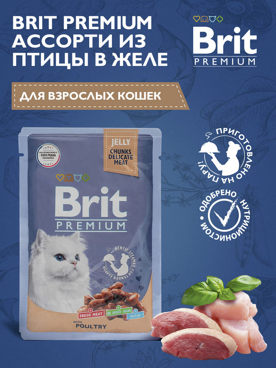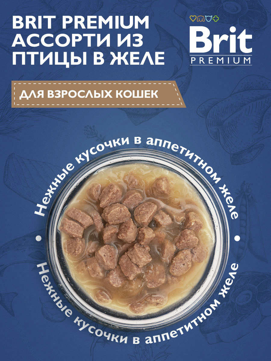 Корм влажный Brit для взрослых кошек ассорти из птицы в желе, 85г