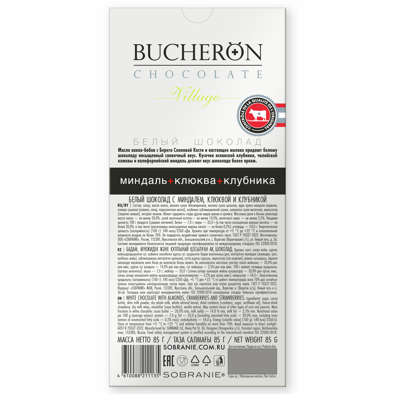 Шоколад Bucheron Village белый миндаль с клюквой и клубникой, 85г