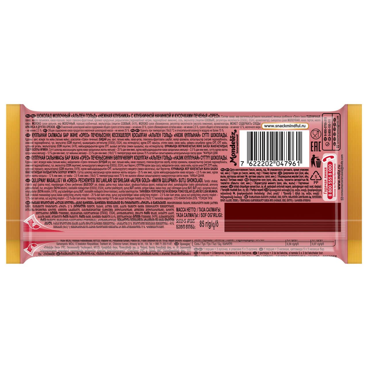 Шоколад Alpen Gold Oreo Нежная клубника молочный, 85г