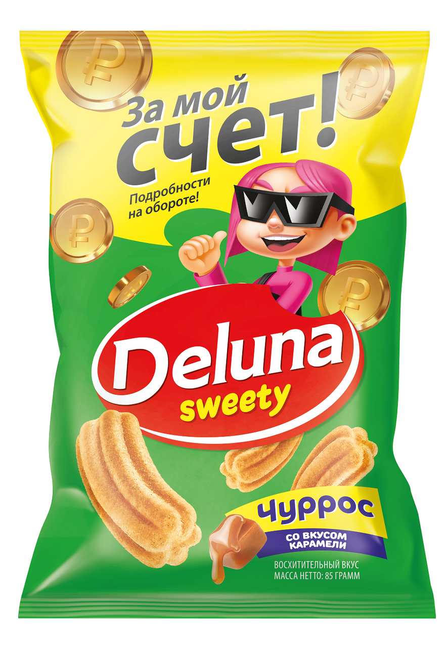 Снеки Deluna чуррос со вкусом карамели, 85г