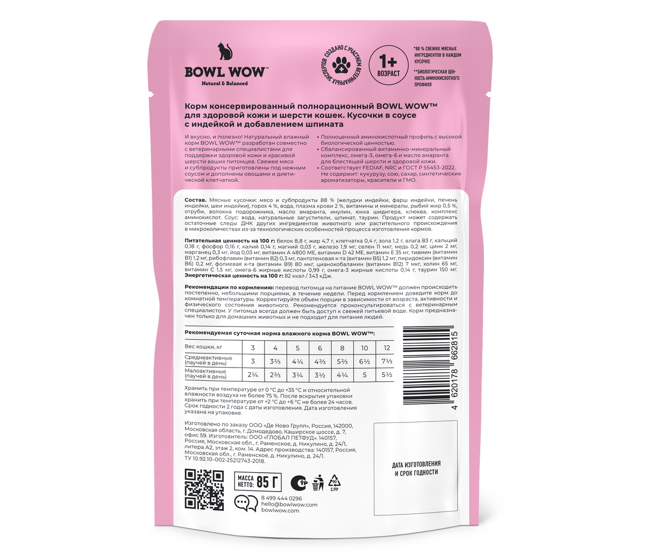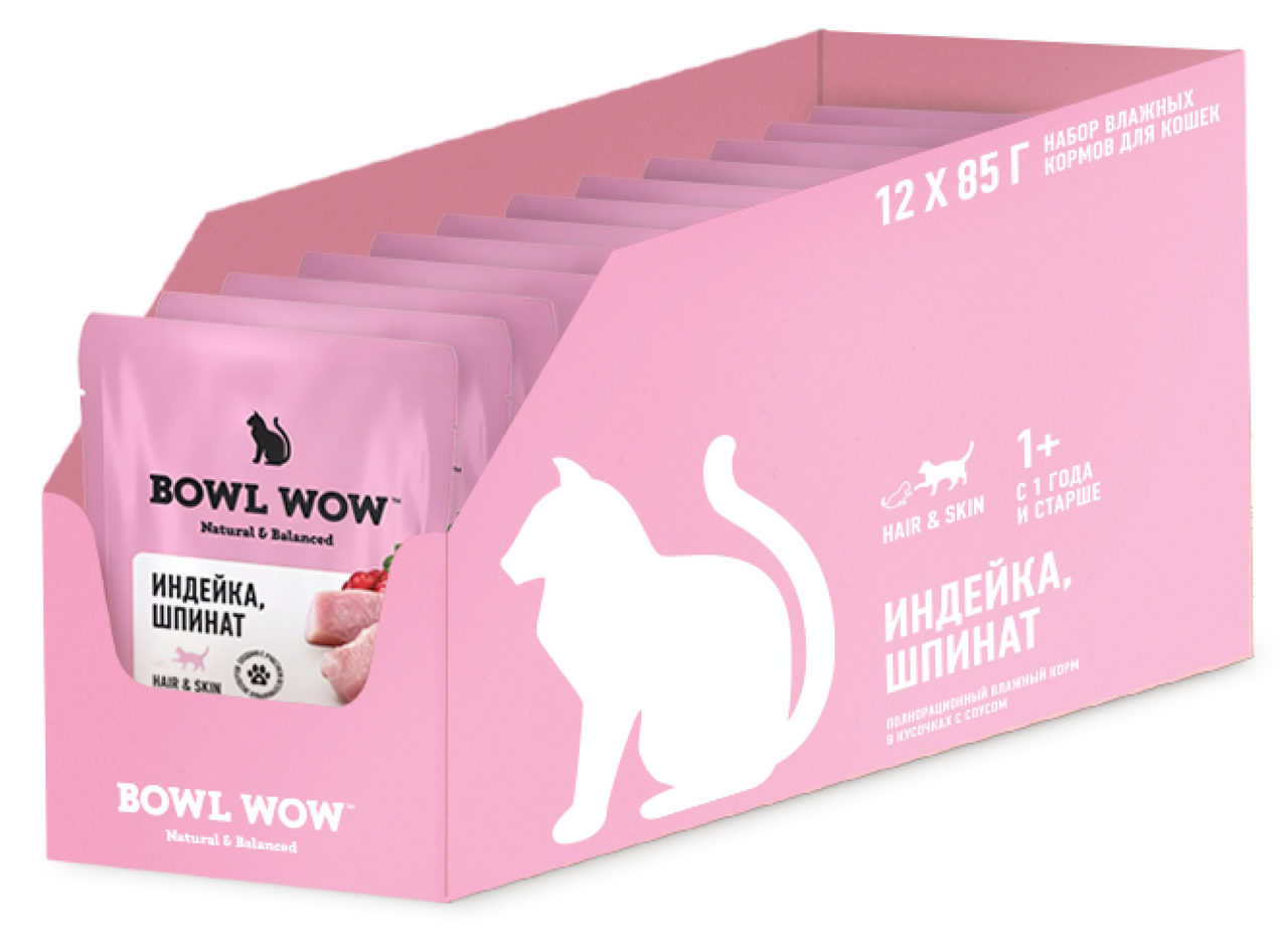 Корм влажный Bowl Wow индейка и шпинат, 85г