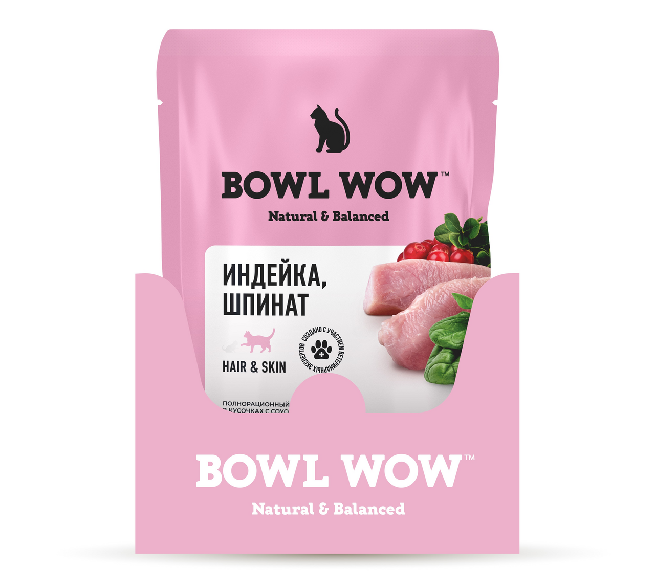Это натуральная формула, разработанная совместно с ветеринарными специалистами для поддержания здоровой кожи и красивой шерсти питомца. Свежая индейка и самые полезные мясные субпродукты human-grade качества приготовлены под нежным соусом и дополнены овощами и диетической клетчаткой. Правильное соотношение Омега-3 и Омега-6 жирных кислот. Комплекс поддержки чувствительного пищеварения. Разработано совместно с ветеринарными специалистами.Собственная рецептура: не менее 88% высококачественных мясных ингредиентов в каждом кусочке с высокой усвояемостью белка 70% (технология BVaap). Полноценный аминокислотный профиль для вашего питомца без избыточной нагрузки на почки.Комплекс поддержки чувствительного пищеварения: натуральная диетическая клетчатка мягко стимулирует желудочно-кишечный тракт и способствует выводу шерсти, L-карнитин поддерживает печень и способствует правильному метаболизму жиров, а омега-3 и юкка шидигера способствуют снижению воспалительных процессов в кишечнике.Пребиотики для поддержки иммунной системы и микрофлоры кишечника.Баланс витаминов и минералов для поддержания нормального функционирования всех систем организма.