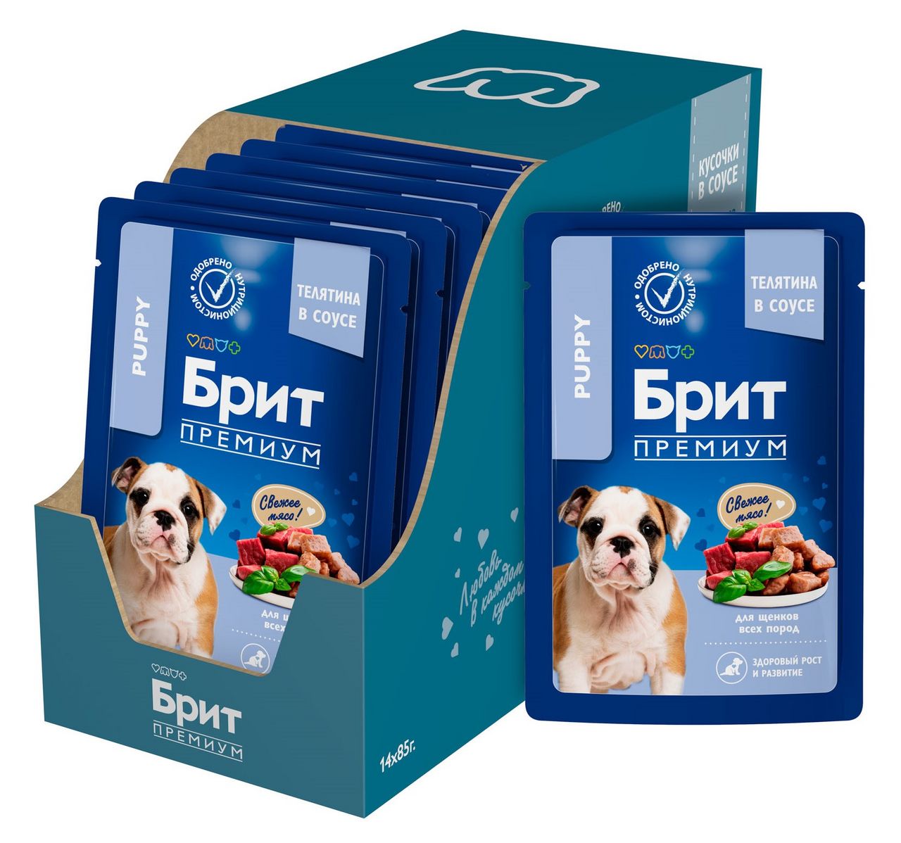 Корм влажный Брит для щенков всех пород с телятиной в соусе, 85г