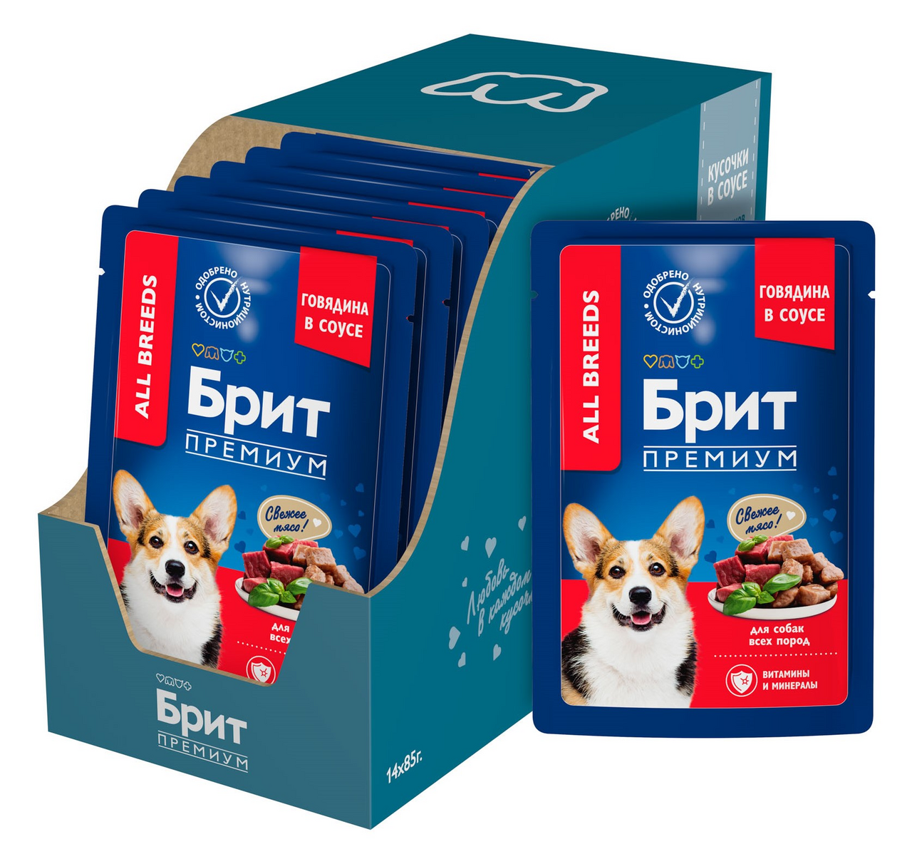 Корм влажный Брит Premium для взрослых собак с говядиной в соусе, 85г