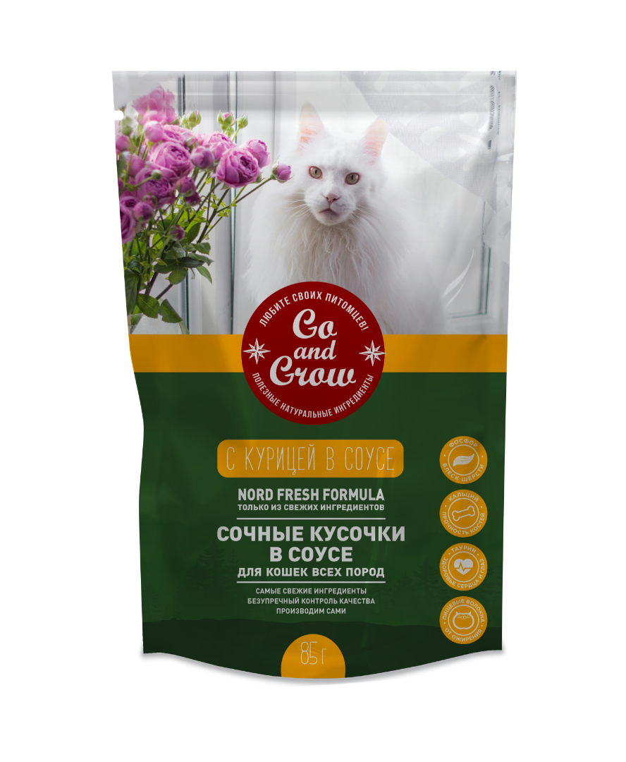 Корм влажный Go and Grow для кошек с курицей в соусе, 85г