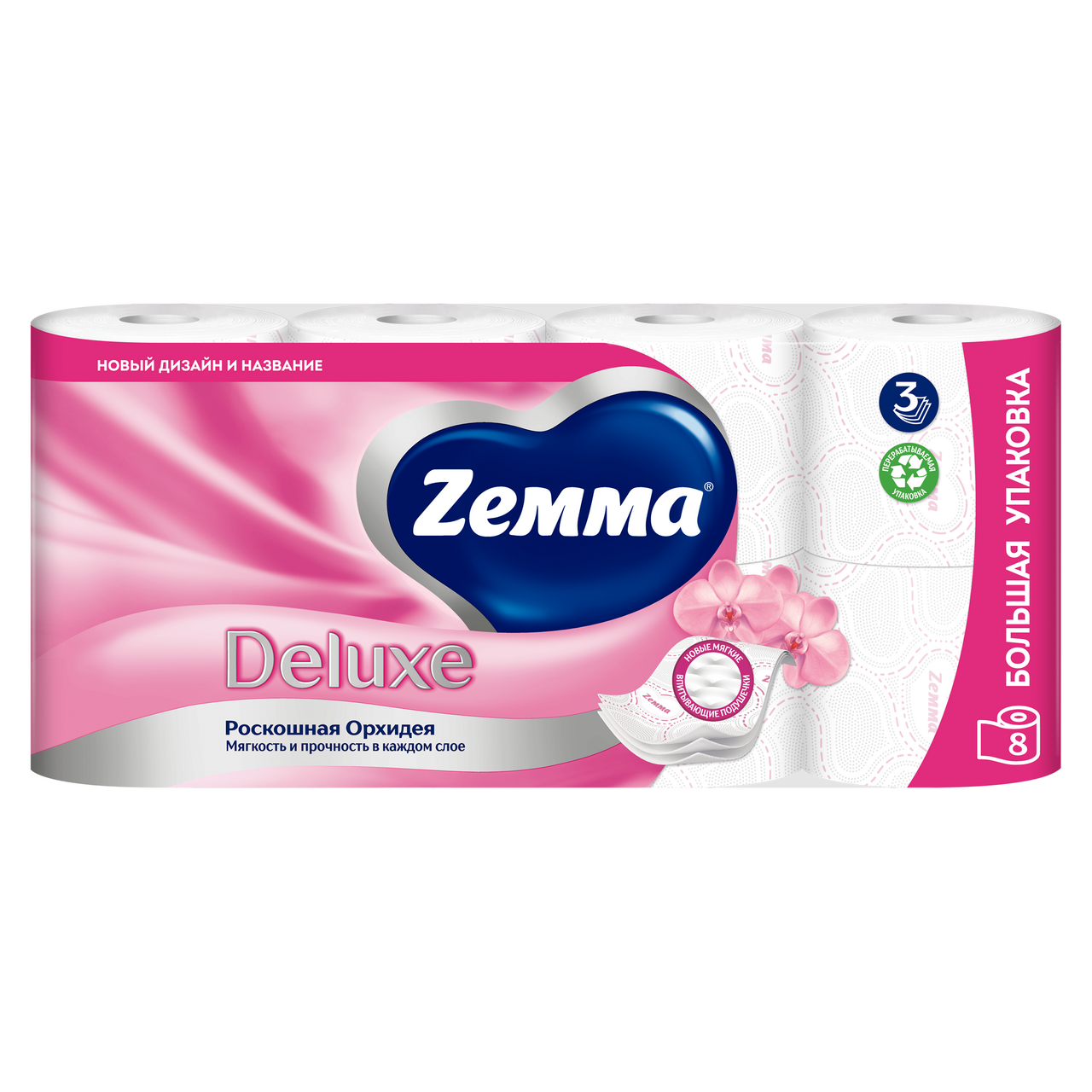 Туалетная бумага Zewa Deluxe Орхидея 3 слоя, 8 рулонов