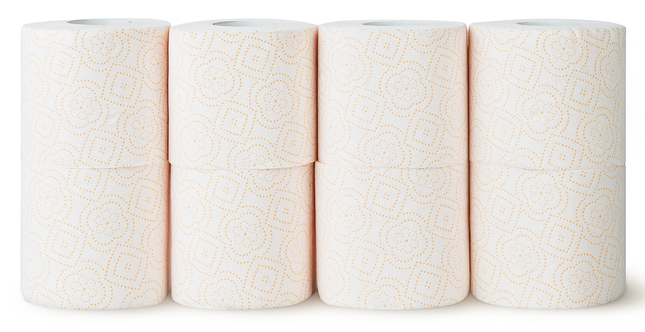 Изготовлена из 100% первичной целлюлозы. Приятный ароматизатор наполнит комнату лёгким запахом ромашки. Обеспечивает превосходный комфорт и ощущение чистоты и свежести. Не расслаивается, полностью растворяется в воде. Два слоя высококачественной целлюлозы обеспечивают оптимальное сочетание мягкости и прочности, а практичной упаковки из 8 рулонов хватит надолго и она не займет много места в ванной комнате.