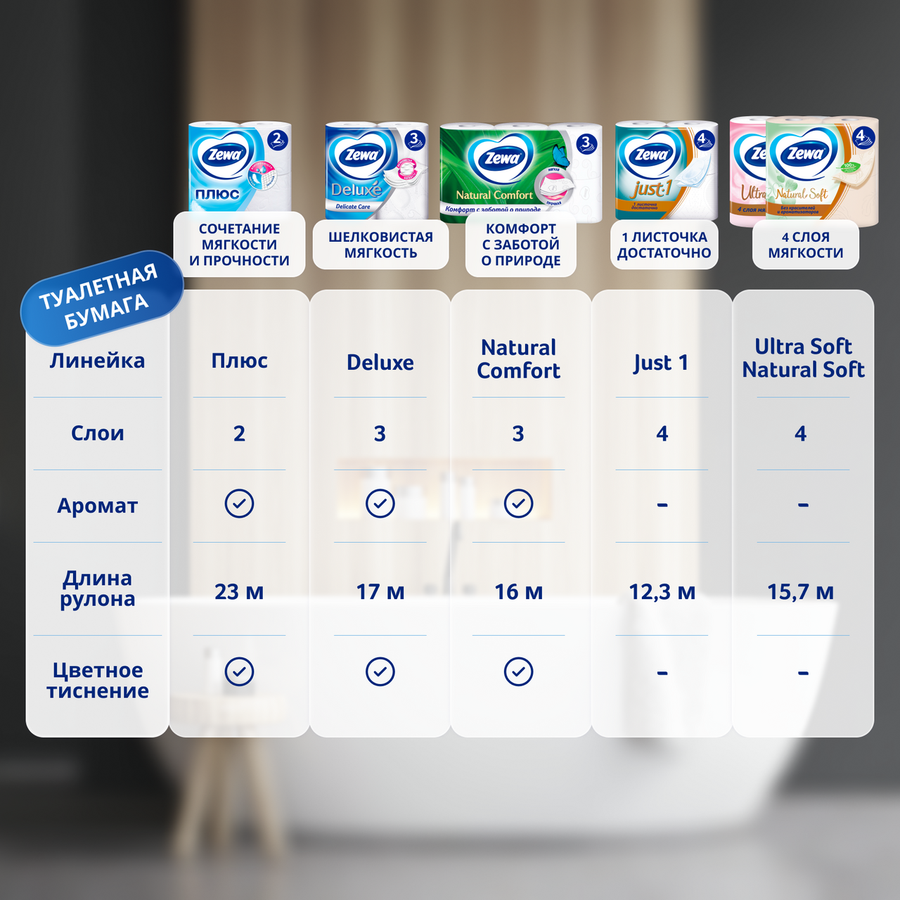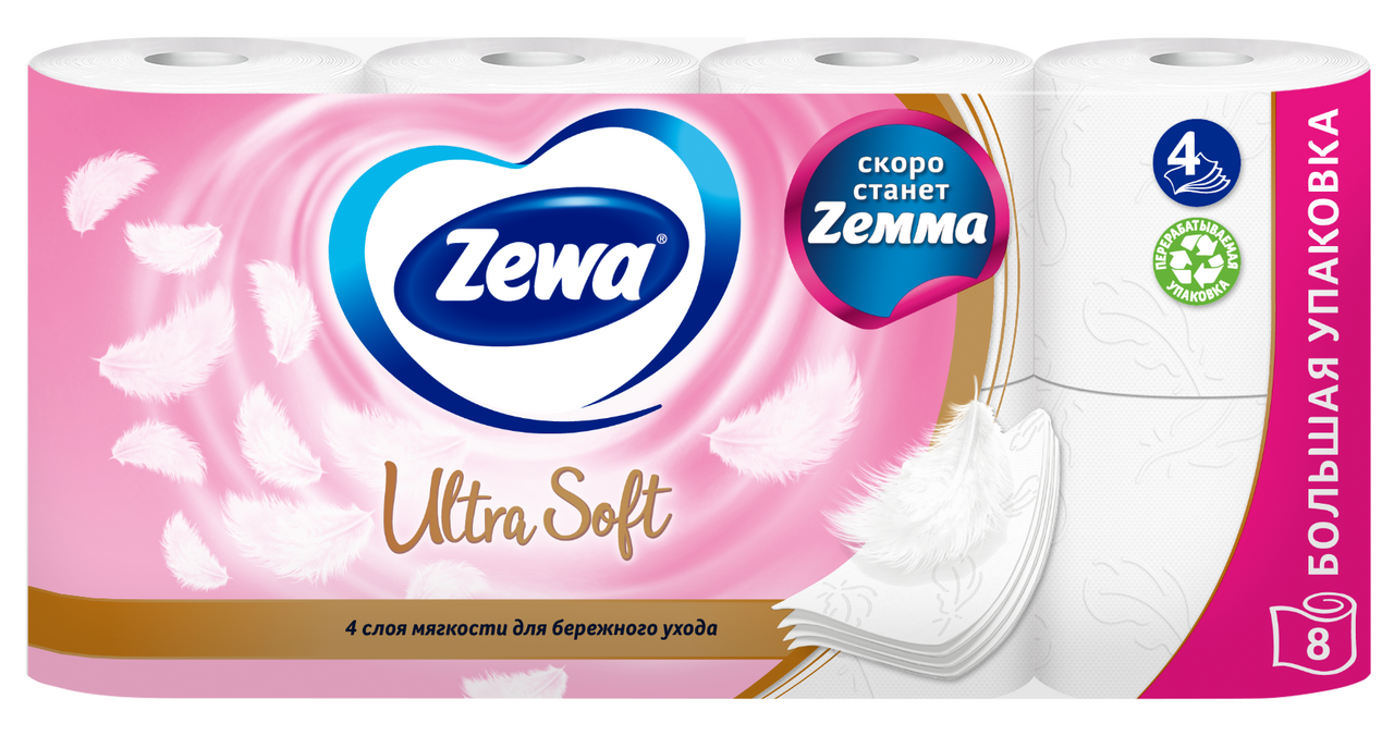 Туалетная бумага Zewa Ultra Soft 4-слойная, 8 рулонов