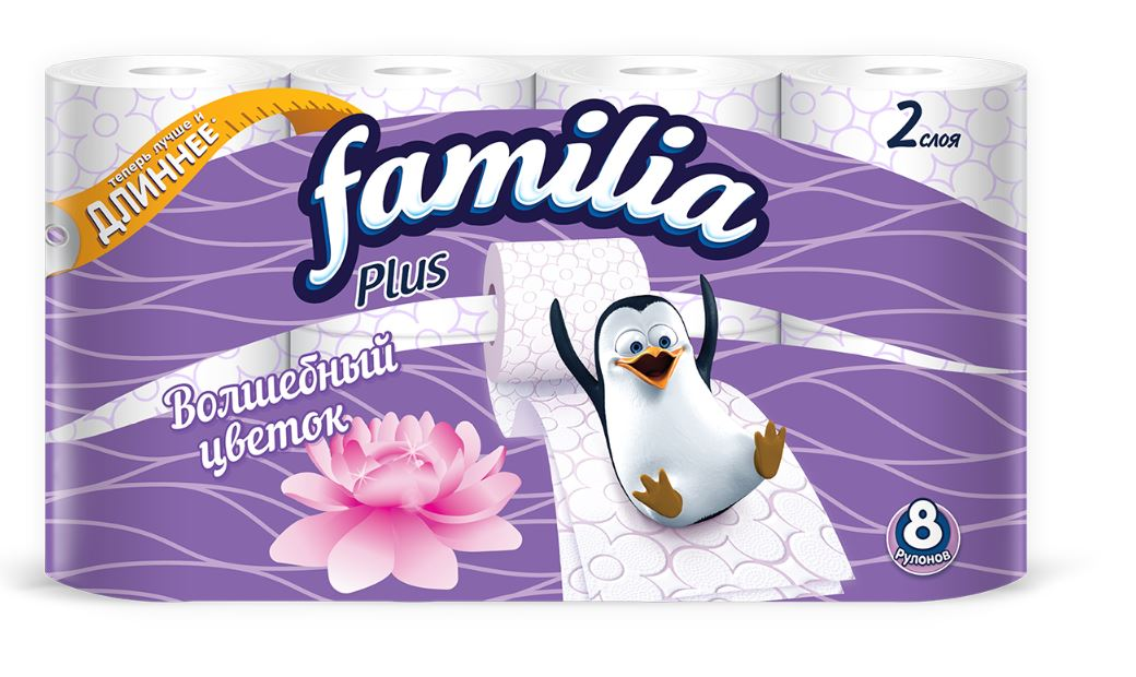 Туалетная бумага Familia Волшебный цветок 2-слойная, 8 рулонов