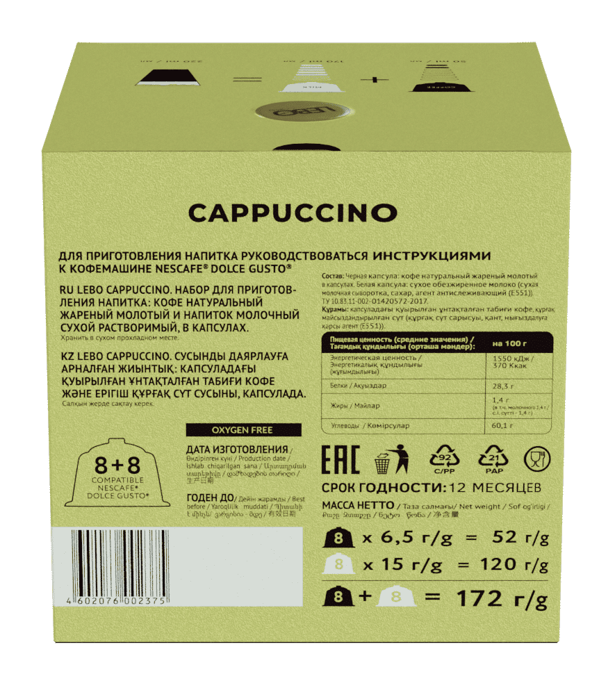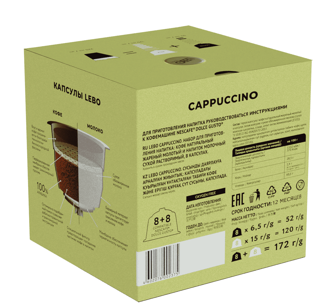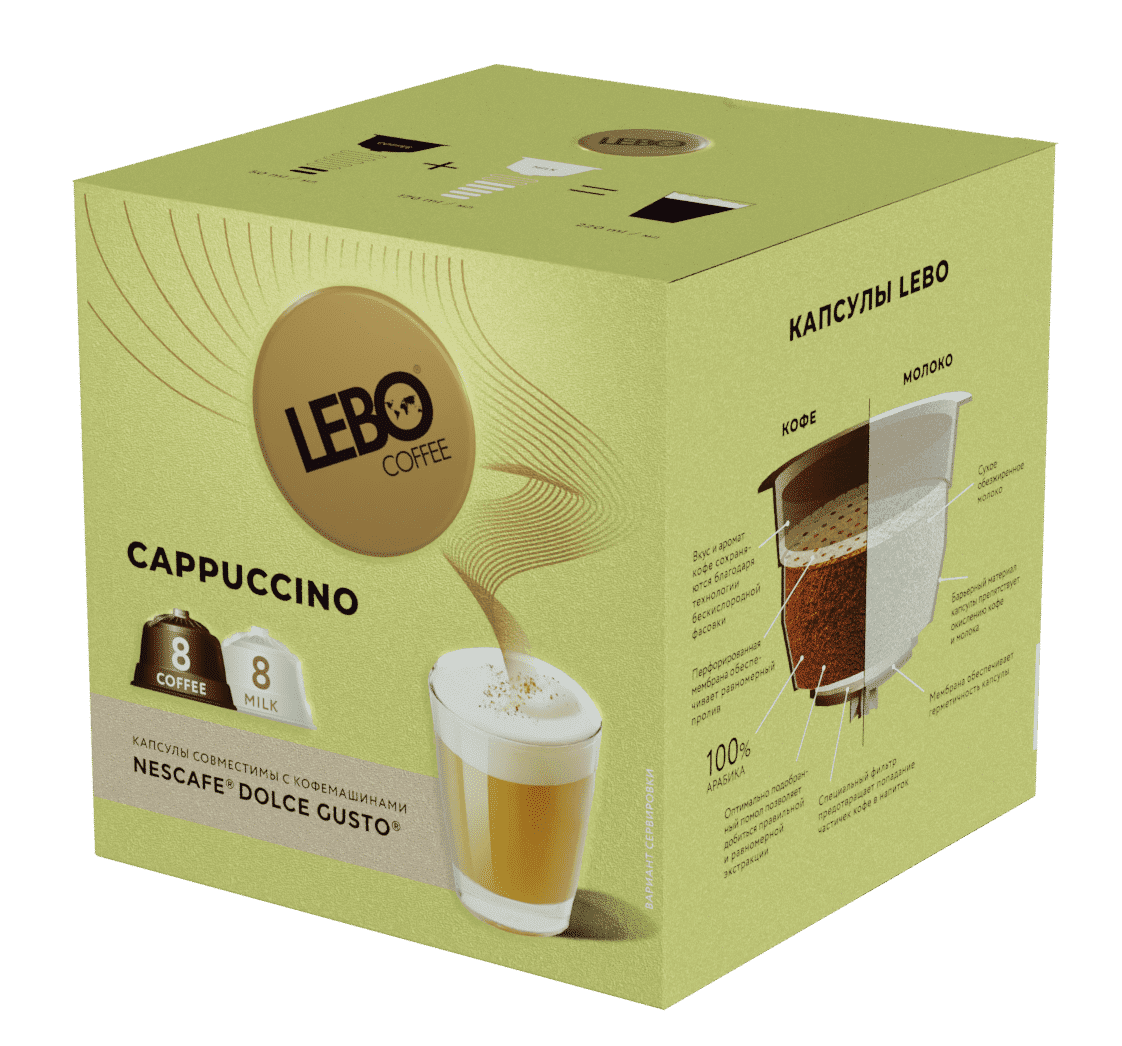 Кофе в капсулах Lebo Cappuccino для кофемашин Dolce Gusto 16шт, 172г