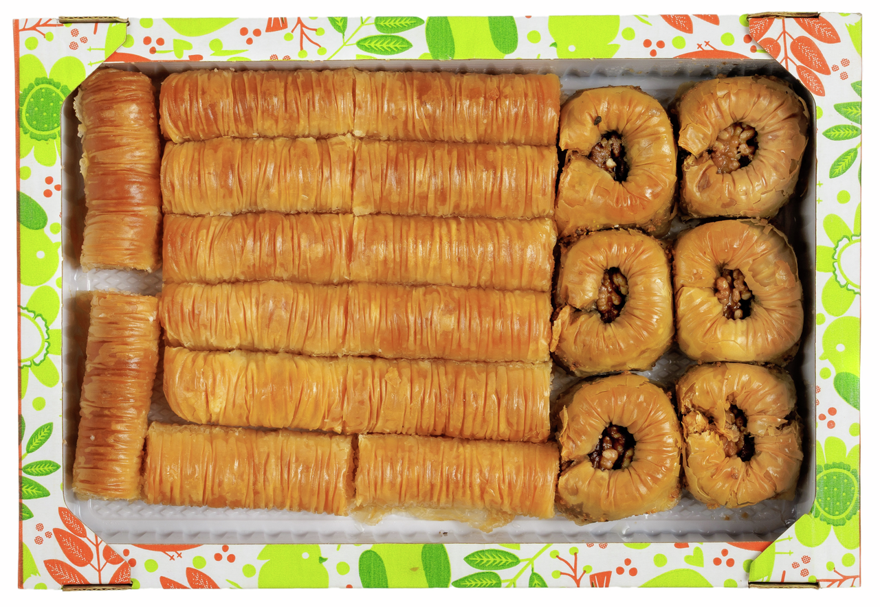 Пахлава - одна из вкуснейших восточных сладостей, которая не оставит равнодушными детей и взрослых. Попробовав ее один раз, вы больше не сможете устоять перед этим лакомством! Классическое тесто для восточной вкусняшки делается турецкими мастерами по старинному рецепту. 40 тончайших слоев теста притаили в себе начинку из отборной ореховой смеси. Щедро пропитываем сладким сиропом тесто. Сочный и аппетитный сладкий бокс. И вот традиционная пахлава уже манит своим золотистым цветом. Мы готовим этот десерт из исключительно натуральных ингредиентов. Восточную сладость изготавливаем и отправляем в день отправки. Отличный продукт питания для перекуса и чаепития. Бокс состоит из ассорти нескольких видов, упакованную в прочную подарочную коробку.
