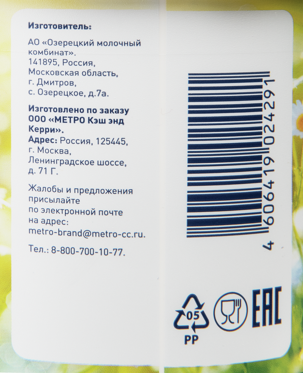 Сливки, закваска молочнокислых микроорганизмов. Количество молочнокислых микроорганизмов КОЕ в 1г продукта в течение срока годности не менее 107.