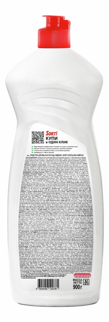 Средство Sorti для мытья посуды апельсин-мята, 900г