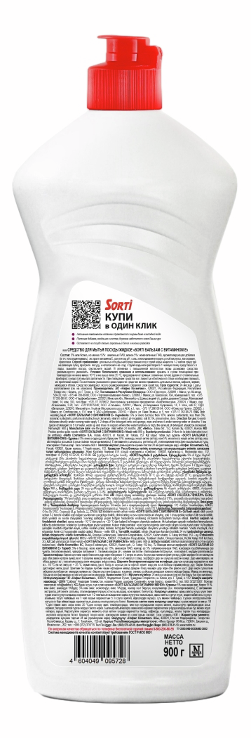 Средство Sorti для мытья посуды бальзам витамин E, 900г