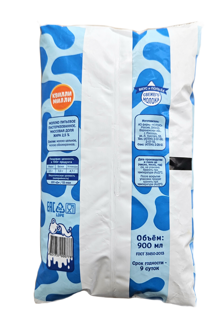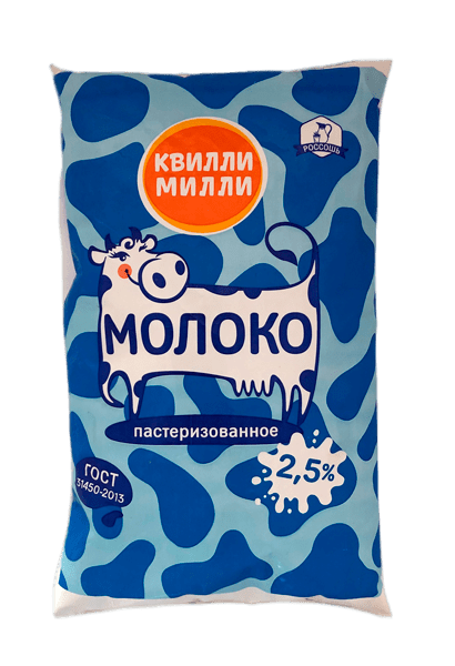 Молоко Квилли Милли пастеризованное 2.5%, 900г