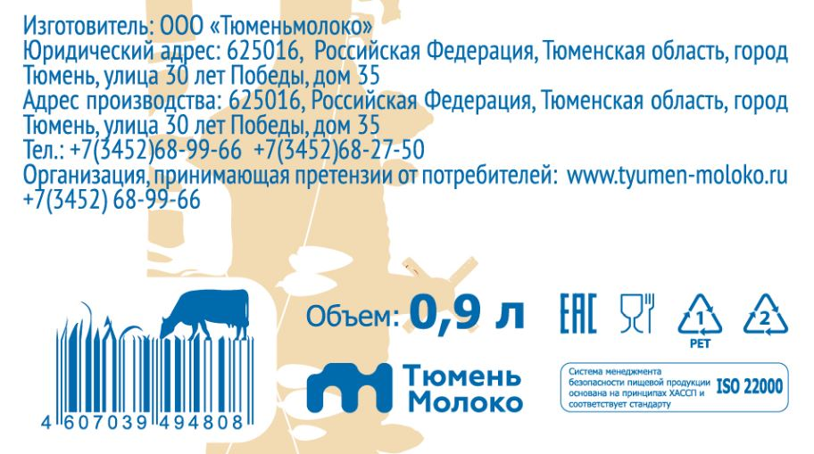 Молоко Першинское топленое 4%, 900мл