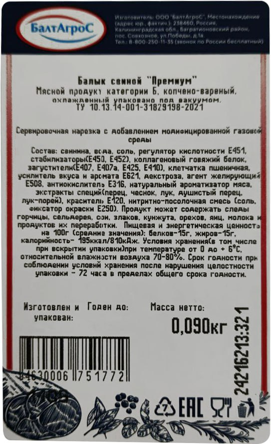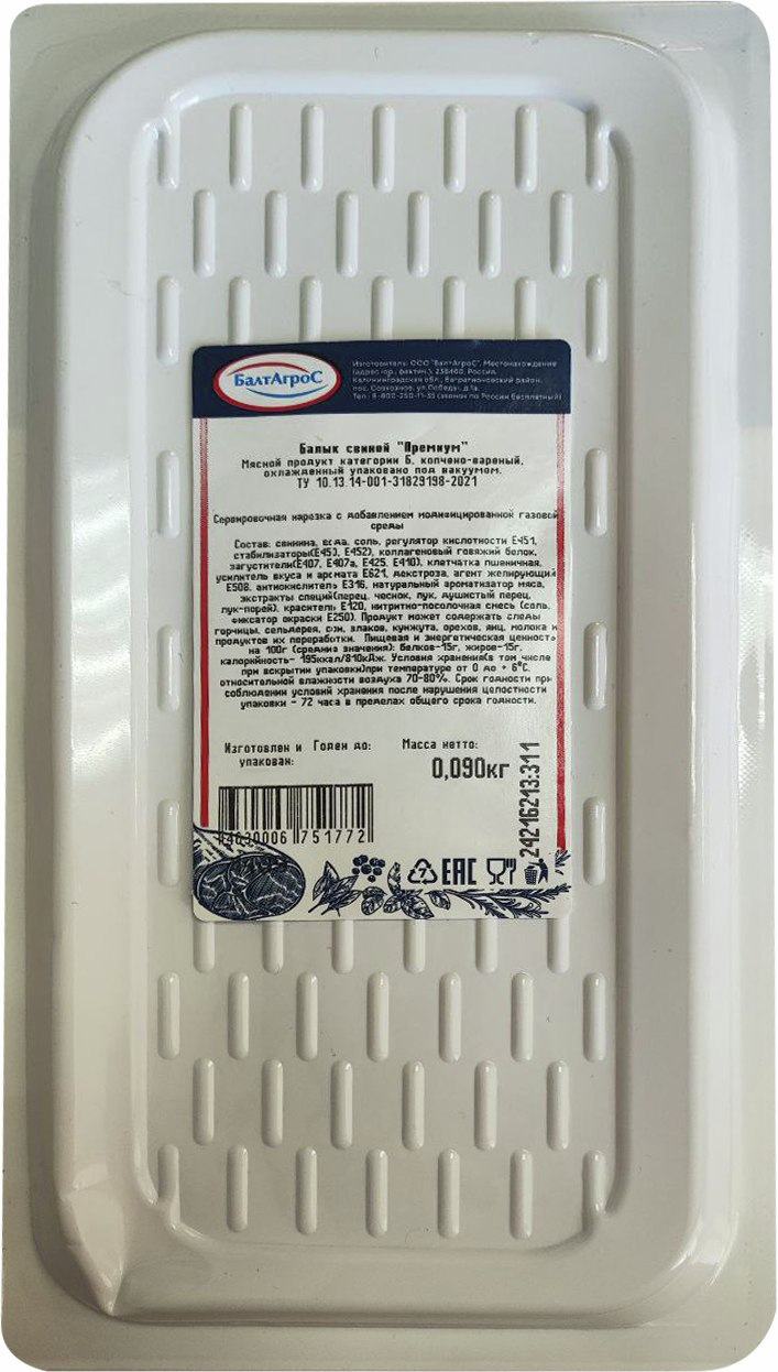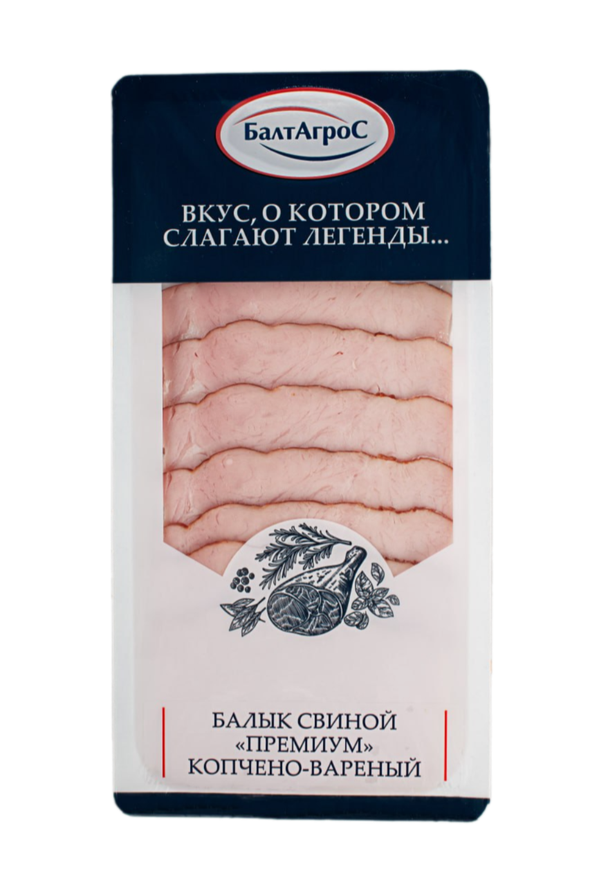 Балык свиной Балтагрос Премиум копчено-вареная нарезка, 90г