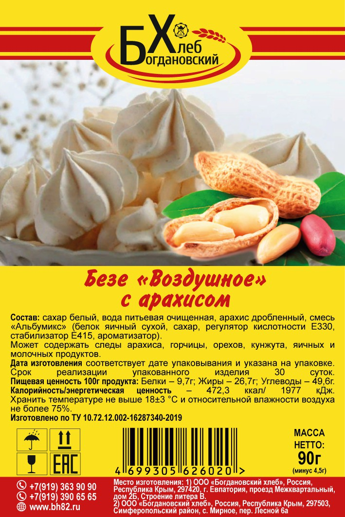 Безе Богдановский хлеб воздушное с арахисом, 90г