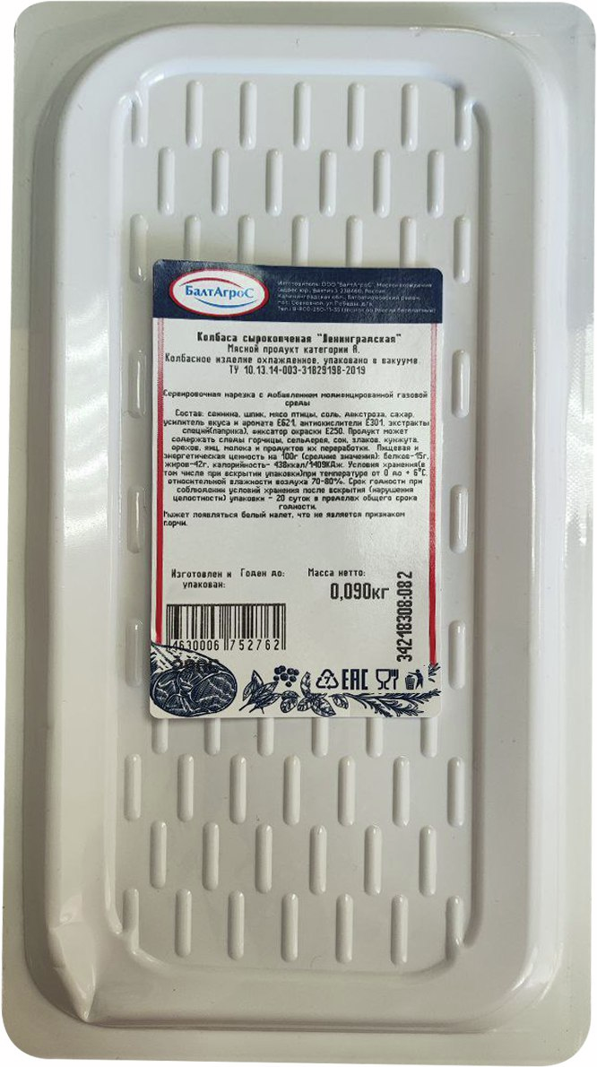 Колбаса Балтагрос Ленинградская сырокопченая нарезка, 90г