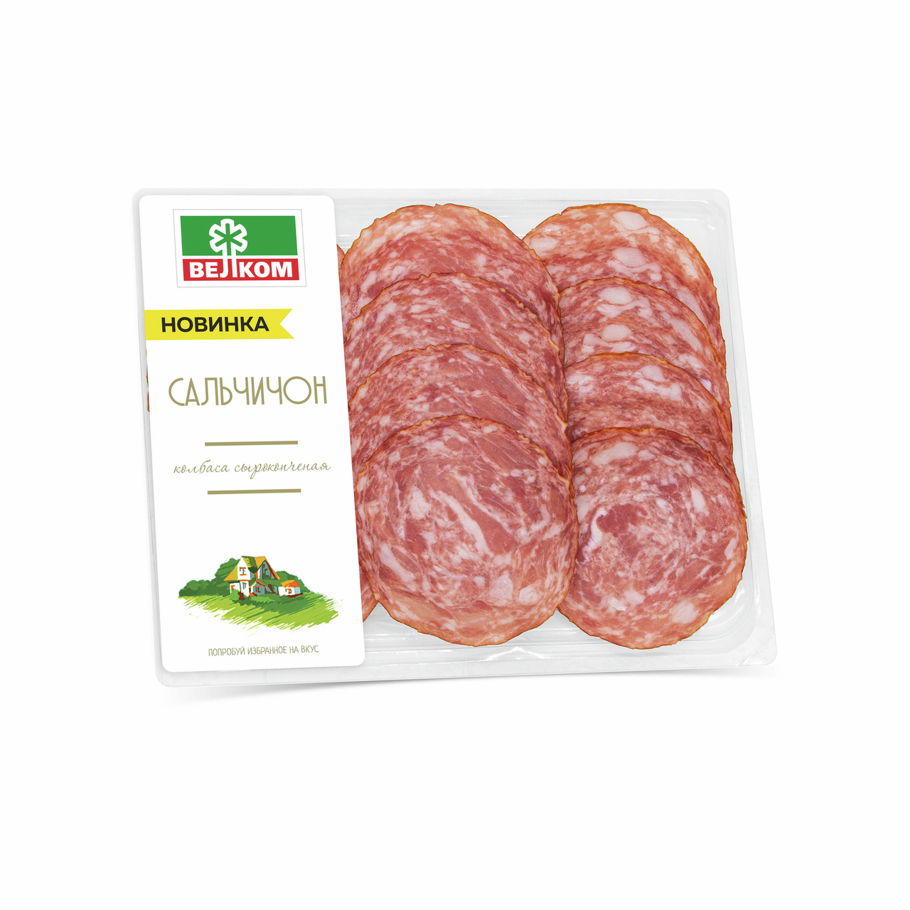Колбаса Велком Сальчичон сырокопченая полусухая нарезка, 90г