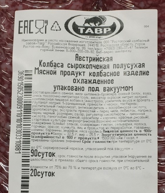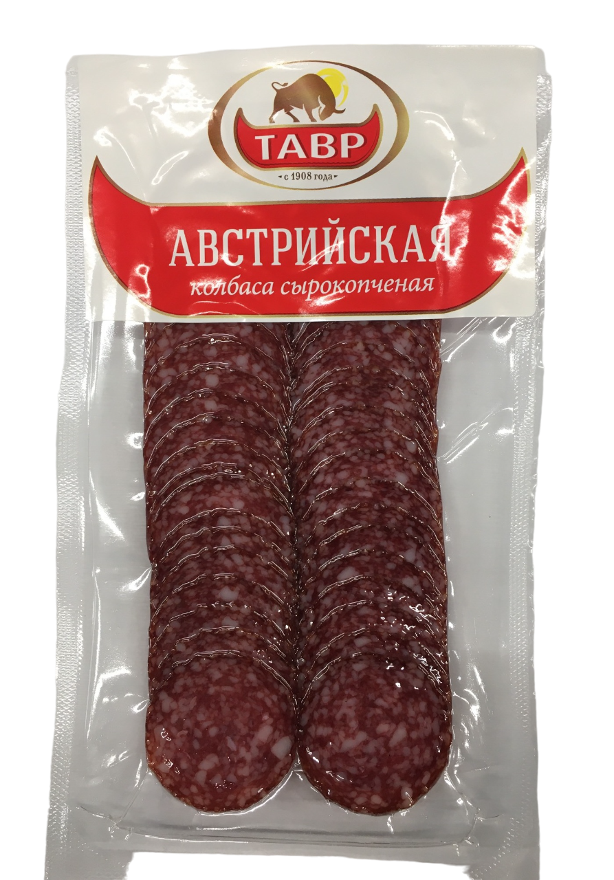 Колбаса Тавр австрийская полусухая сырокопченая нарезка, 90г