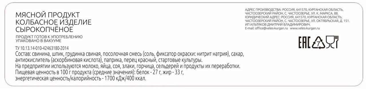 Изготовителей сырокопченых и сыровяленых колбас называют высокими профессионалами. Здесь важно не ошибиться в сырье и выработать продукт по классическим технологиям. Созревание сырокопченых колбас длится не менее 30-40 суток. В итоге на ваши столы попадает благородный продукт, отличающийся натуральностью и вкусом, ароматом пряных специй, с четким и красивым срезом. Коллекция сырокопченых колбас мясокомбината Велес представлена широким ассортиментом: Сервелат, Зернистая, Брауншвейгская, Салями элитная, Московская. Каждая из них по-своему восхитительна и является настоящим деликатесом.