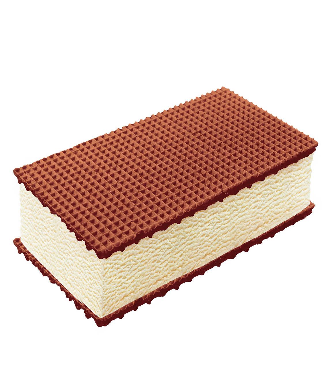 Пломбир: молоко коровье цельное, молоко цельное сгущённое с сахаром (молоко цельное, молоко обезжиренное, сахар (сахароза)), вода питьевая, масло сливочное, сухой глюкозный сироп, комплексная пищевая добавка (эмульгатор - моно- и диглицериды жирных кислот, стабилизаторы: гуаровая камедь, камедь рожкового дерева, тары камедь, каррагинан) Вафли: мука пшеничная, какао-порошок, масло соевое, вода питьевая, эмульгатор соевый лецитин, яичный порошок, разрыхлитель –гидрокарбонат натрия (сода пищевая), соль.