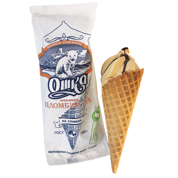Мороженое пломбир Ошка Крем-брюле на сливках в вафельном рожке ГОСТ 15%, 90г