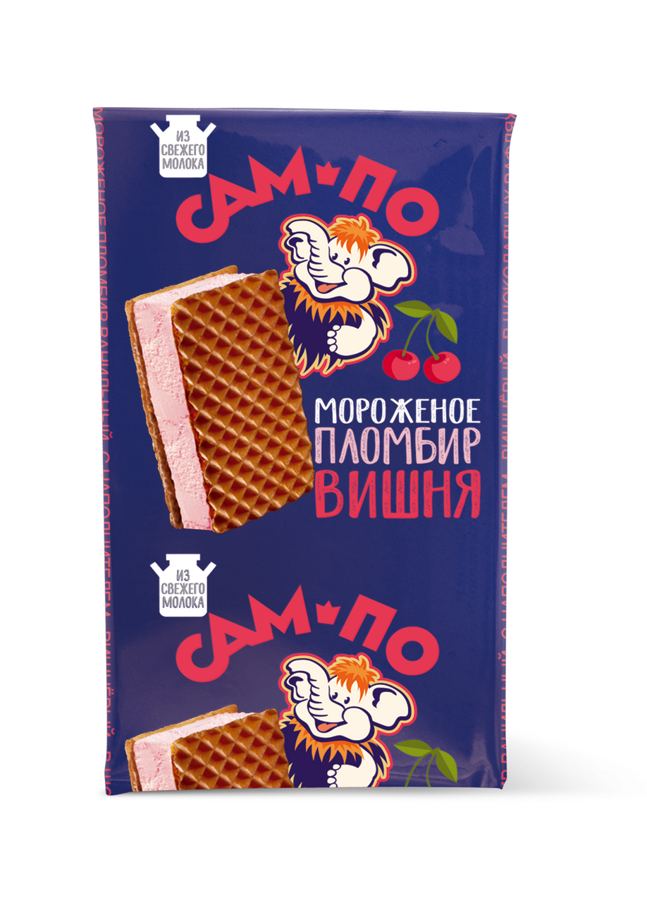 Мороженое пломбир Сампо Ванильное с вишневым наполнителем на вафлях 90г