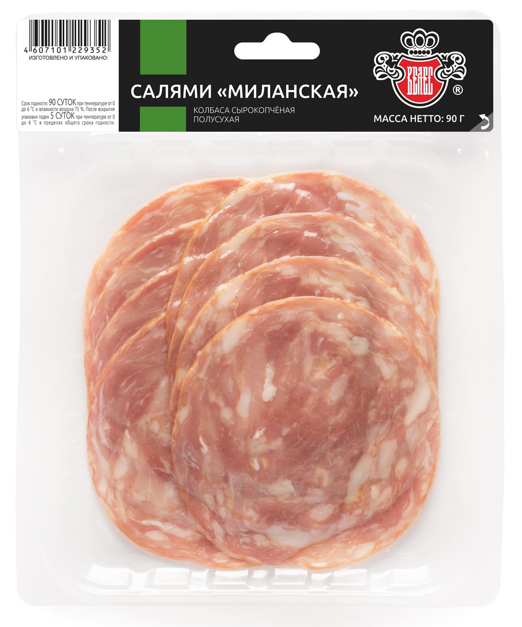 Колбаса Велес салями Миланская сырокопченая нарезка, 90г