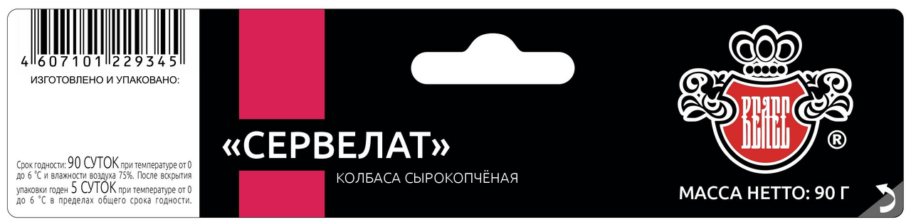 Колбаса Велес Салями сырокопченая нарезка ГОСТ, 90г