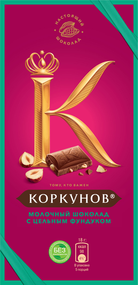 Премиальный молочный шоколад Коркунов с цельным фундуком — идеальный подарок для настоящих ценителей классики и вкуса. Прекрасно подойдет в качестве комплимента тому, кто для Вас действительно важен.