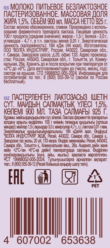 Безлактозное молоко Пестравка - натуральное молоко, изготовленное с использованием ферментного препарата лактаза, расщепляющего лактозу. Молоко без лактозы (содержание лактозы менее 0,01%) легко усваивается и обладает всеми полезными свойствами традиционного молока: богато белком, витаминами, кальцием и другими микроэлементами. Лёгкая сладость, которую молоко приобретает в процессе расщепления лактозы, идеально дополнит чашечку любимого кофе. Также на безлактозном молоке можно готовить привычные блюда или просто наслаждаться знакомым с детства напитком, не испытывая дискомфорта. Безлактозные продукты - выбор тех, кто следит за своим питанием и здоровьем.