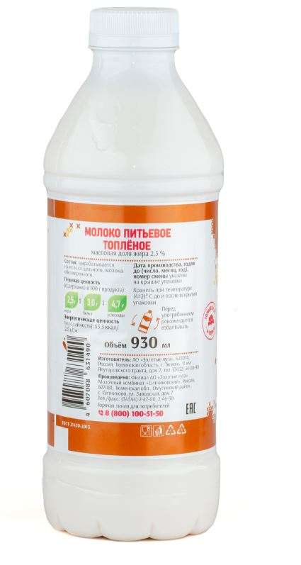 Молоко Золотые луга топленое 2.5%, 930мл