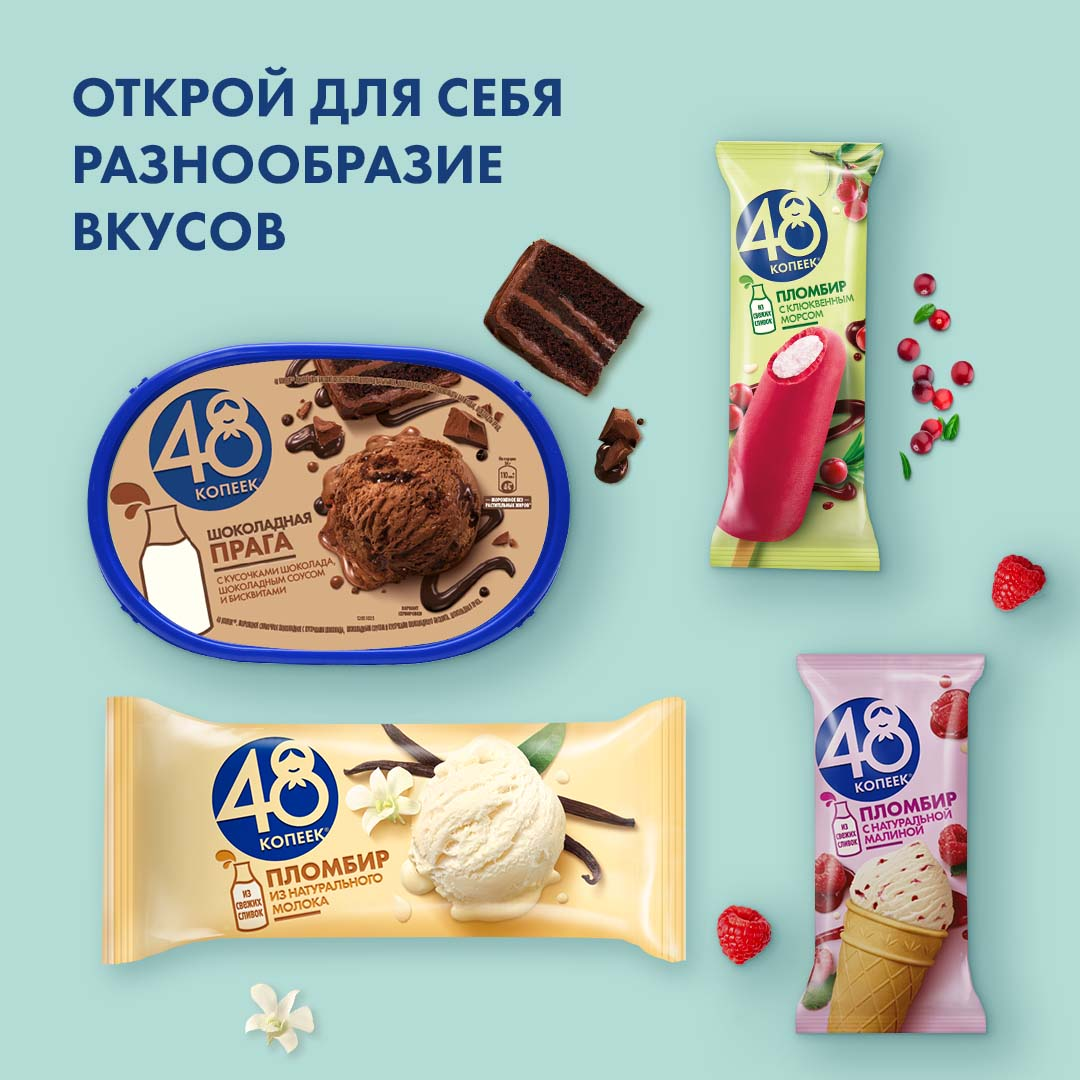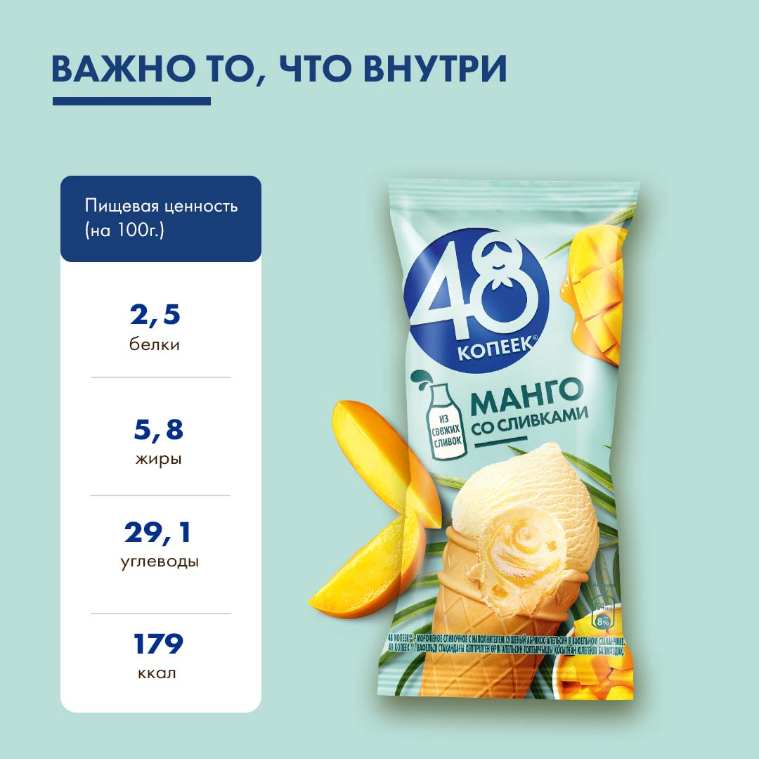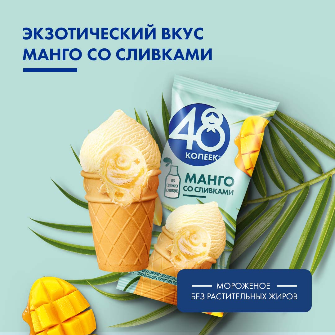 Мороженое молочное 48 копеек Манго со сливками в вафельном стаканчике, 94г