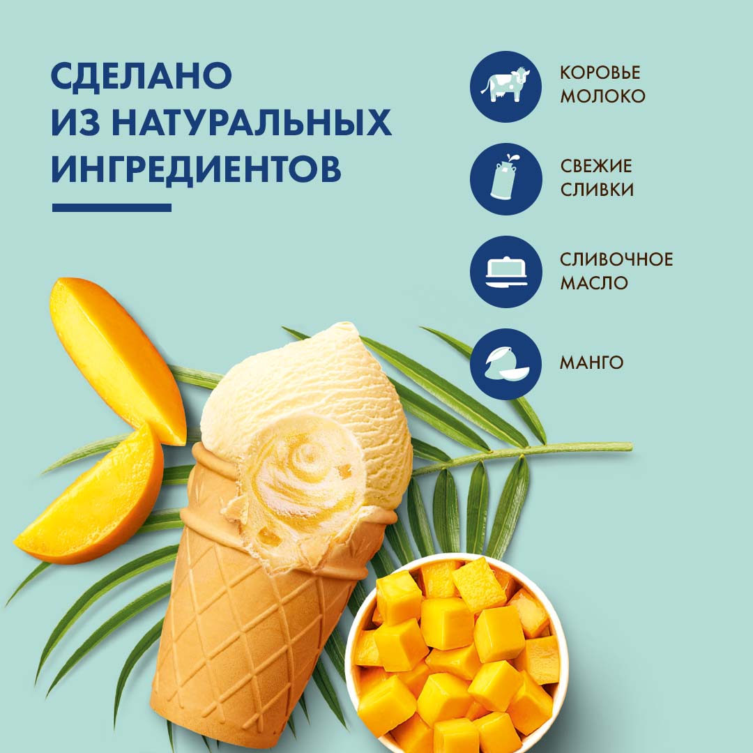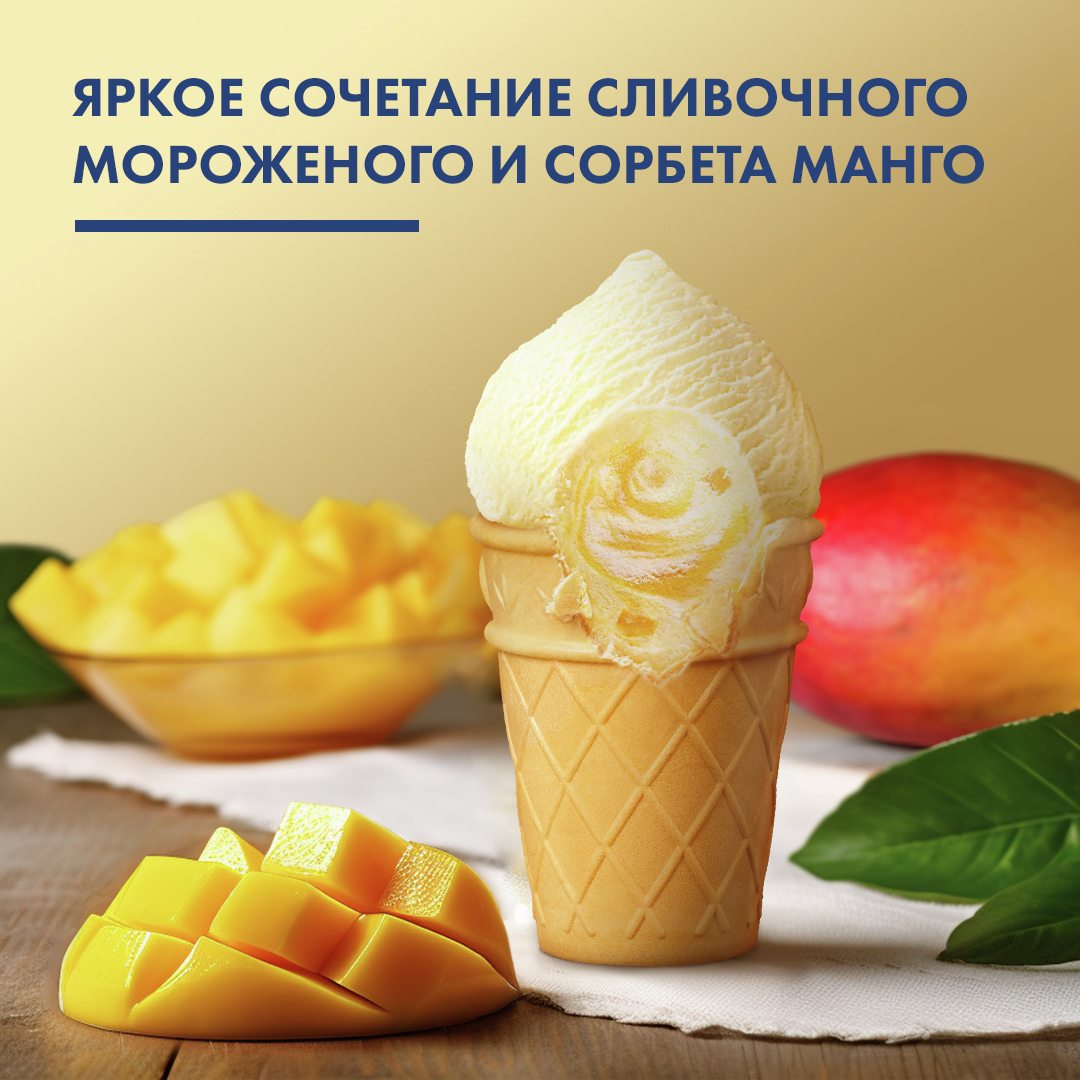 Нежнейшее сочетание сливочного мороженого и освежающего сорбета с кусочками спелого манго!