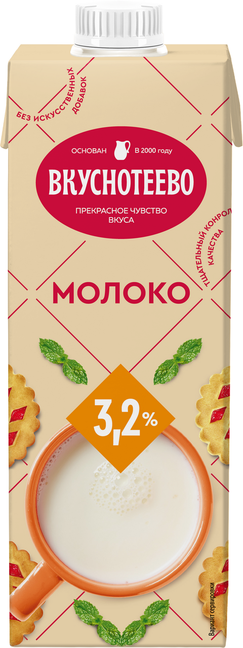 Молоко Вкуснотеево ультрапастеризованное ГОСТ 3.2%, 950г
