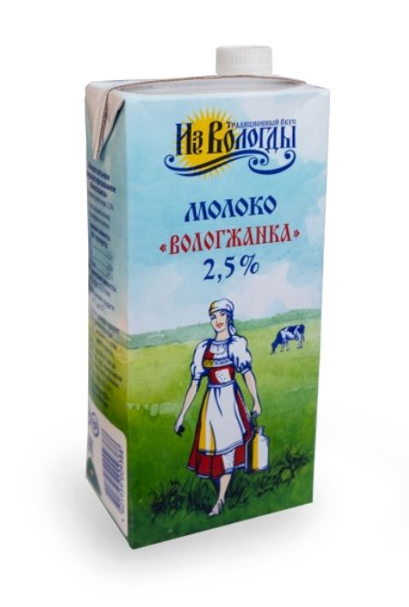 Молоко Вологжанка ультрапастеризованное 2.5%, 950г