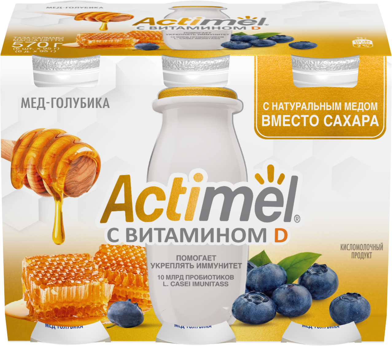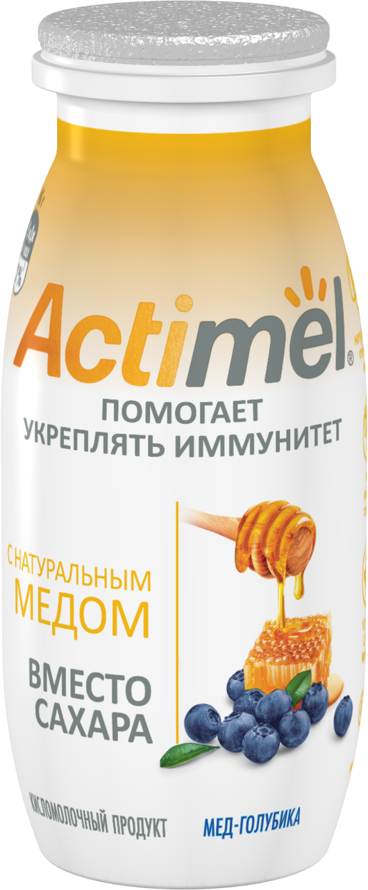 Маленькая бутылочка – большая польза в новом Актимель c натуральным медом вместо сахара! В одной бутылочке Актимель – только натуральная сладость меда, сочных ягод, и неизменная польза 10 млрд пробиотиков L.Casei Imunitass, витаминов B6, D3. Будь сильнее вместе с Актимель. Укрепляй иммунитет каждый день.