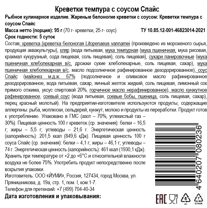 Креветки темпура Йуми с соусом спайс охлажденные, 95г