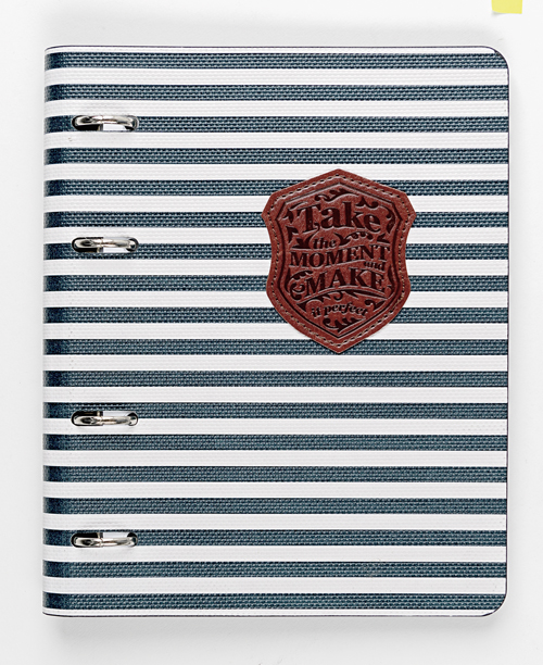 Тетрадь на кольцах представлена в формате А5. Блок — сменный, изготовлен из офсетной бумаги и состоит из 120 листов в клетку. Дизайн обложки — Регата, представлен в единственном виде.