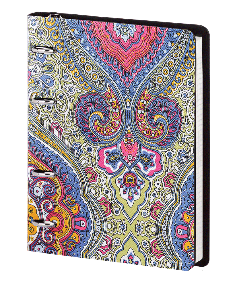 Тетрадь на кольцах представлена в формате А5. Блок — сменный, изготовлен из офсетной бумаги и состоит из 120 листов в клетку. Дизайн обложки — Слон, представлен в единственном виде.
